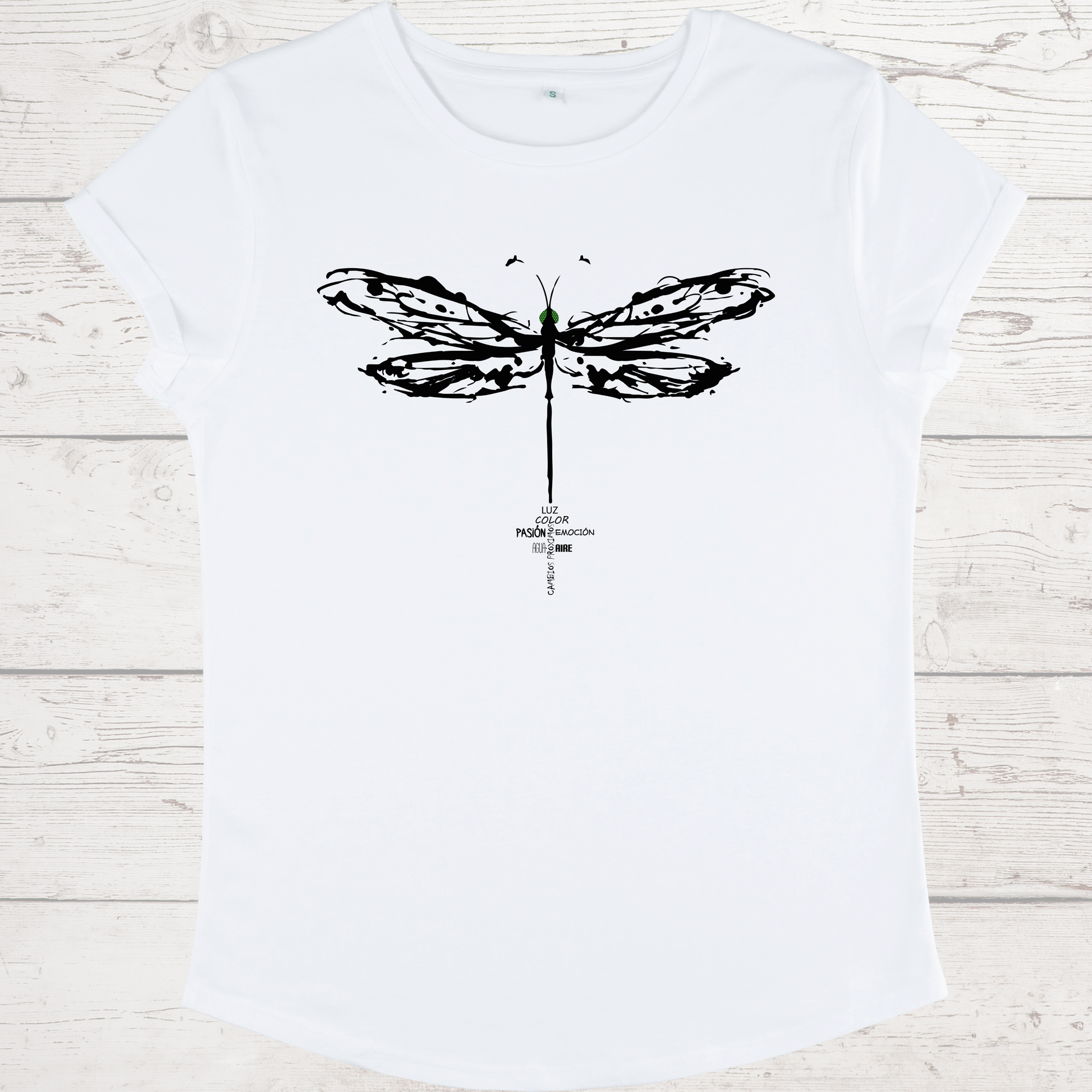 Conecta con las cualidades y el poder de la libélula, con nuestra camiseta orgánica de mujer. Hecha con fibras naturales y de tacto suave, esta camiseta es calidad y originalidad en una misma prenda 🌿